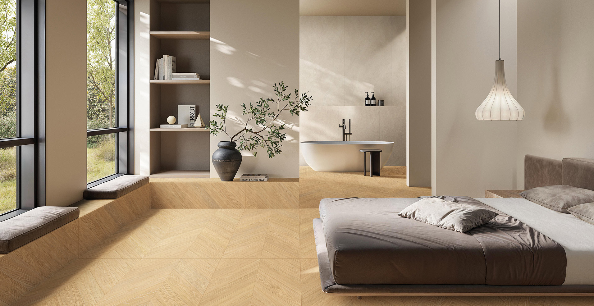 依諾瓷磚連紋大板產品及效果圖展示。連續拼接的超大畫面設計,拼出你想要的任意規格。